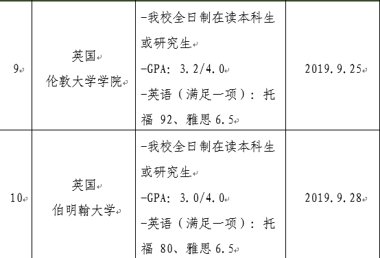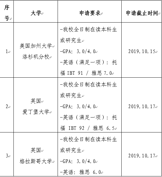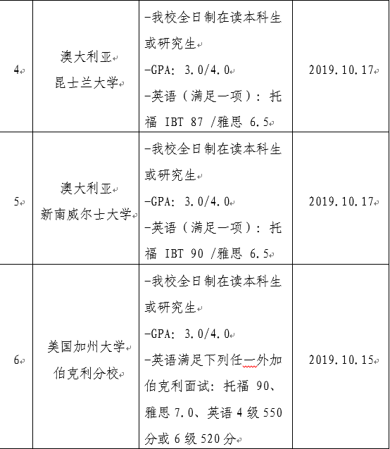 所有报名材料需在相应大学申请截止日期当天下午3:00前提交至校对外合作与交流处(以校内报名材料提交时间为准,时间严守,逾期不候)。