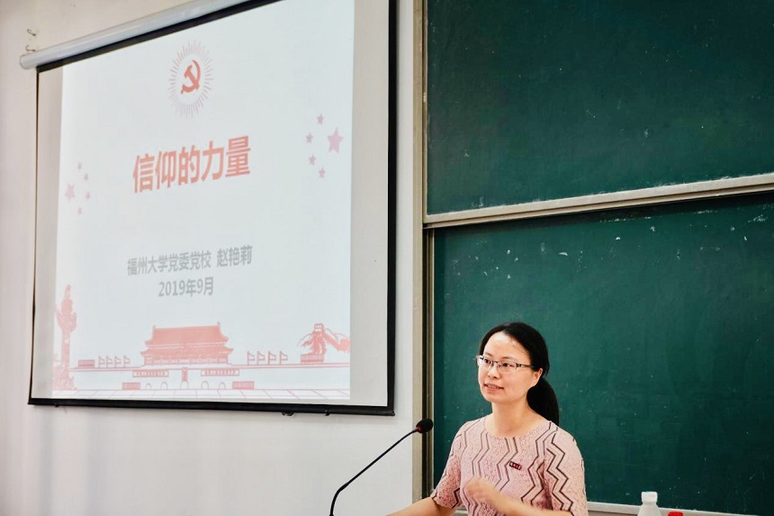 为加强新生爱国主义教育,激发爱国爱党热情,2019年9月6日,学院举办《信仰的力量》专题党课讲座,福州大学党委党校赵艳莉老师应邀主讲,全体2019级新生聆听讲座。