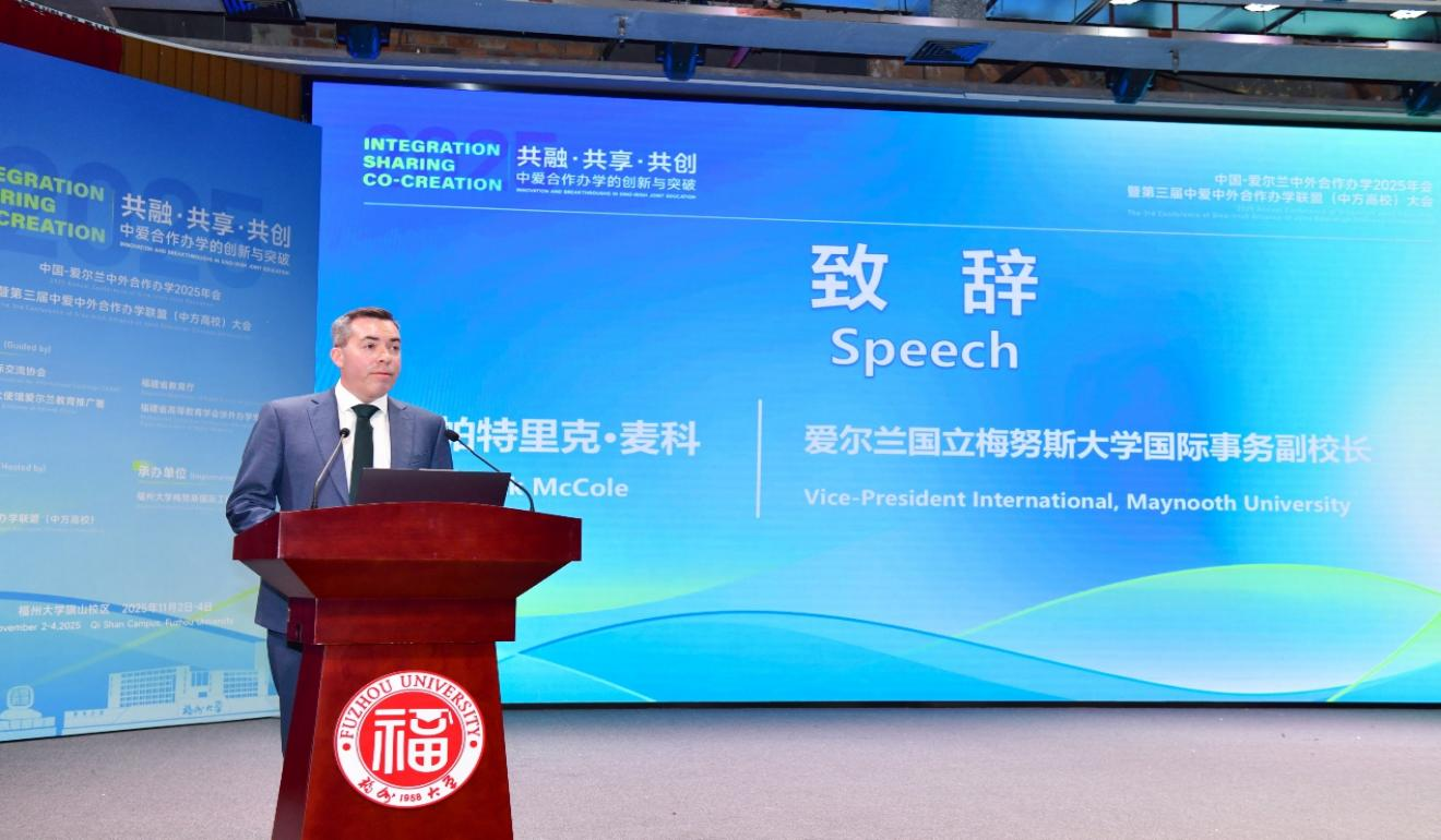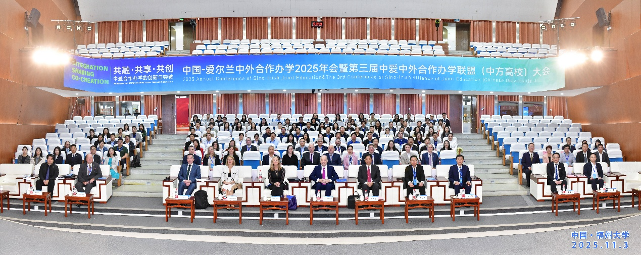 2025年11月2日至4日,由福州大学和中爱中外合作办学联盟(中方高校)联合主办的“中国-爱尔兰中外合作办学2025年会暨第三届中爱中外合作办学联盟(中方高校)大会”在福州大学旗山校区举办。会议得到了中国教育国际交流协会、爱尔兰驻华大使馆爱尔兰教育推广署、福建省教育厅、福建省高等教育学会涉外办学专业委员会的指导支持,来自中爱两国54个高校、联盟单位、教育机构的150余位教育工作者参加会议,围绕“共融、共享、共创——中爱合作办学的创新与突破”主题,共商教育强国战略下中外合作办学赋能高等教育高质量发展的新路径。