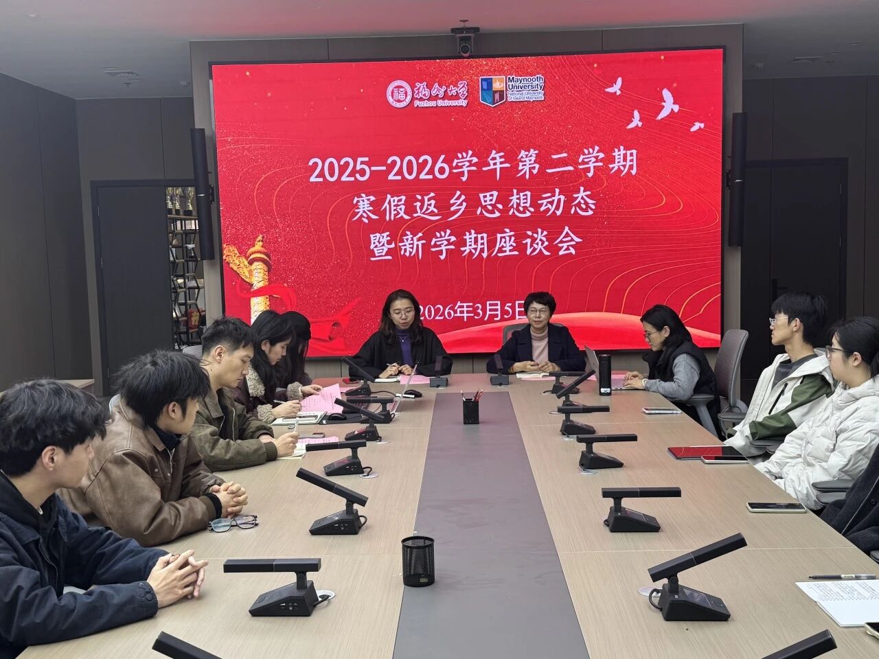 召开2025-2026学年第二学期寒假学生返乡思想动态暨新学期座谈会。学院党委书记翁穗平、副书记王涛,团委书记刘歆一,辅导员陈曦、蒲冰倩、杨洋参加会议,与学子们面对面交流,共话成长与未来。