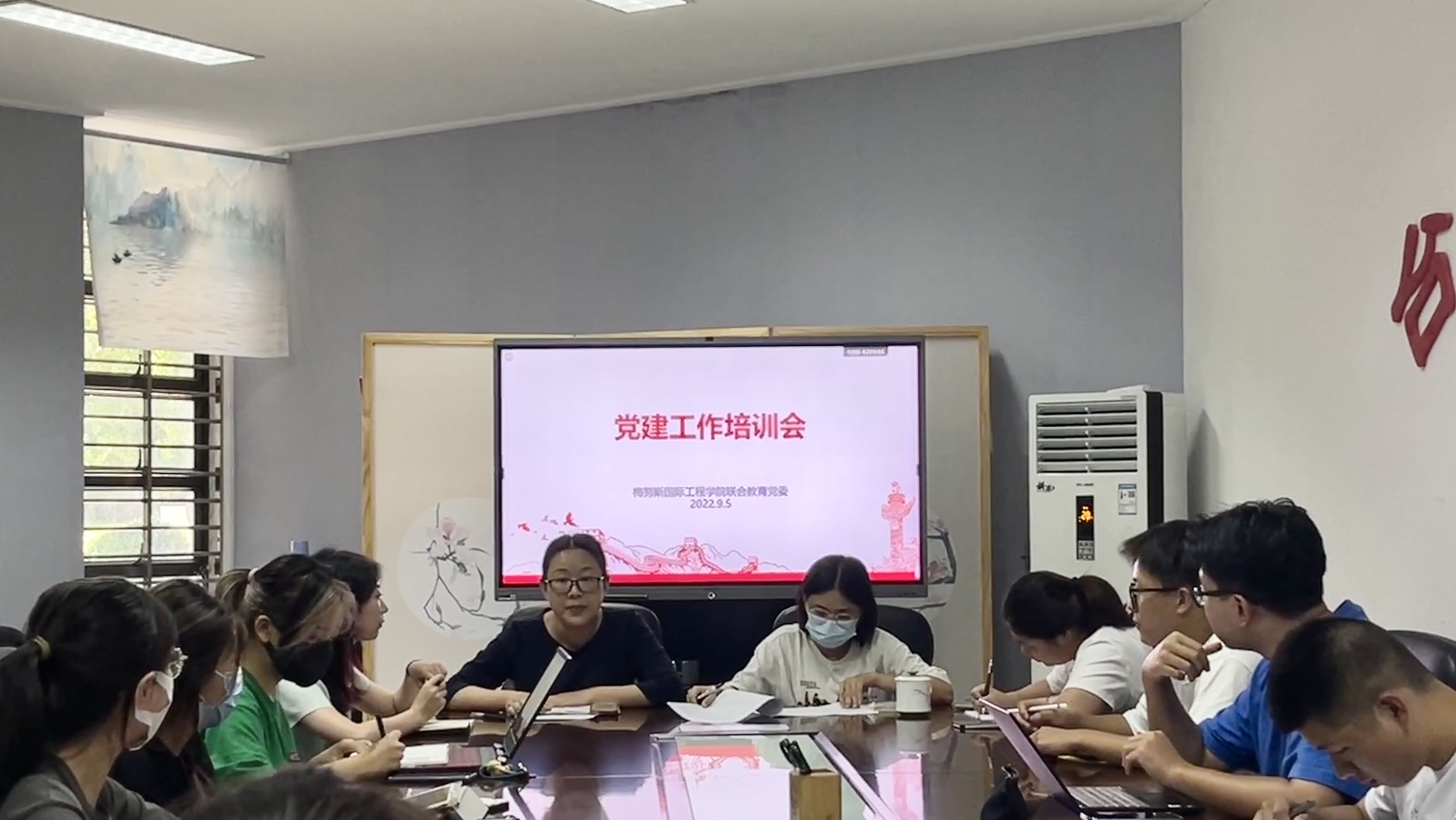 在校友楼111室召开本学期第一次党建工作培训会。梅努斯联合教育党委组织员李清霞老师、梅努斯学院刘歆一老师、学院其他老师、各学生党支部书记、院团委学生会学生发展中心、党委志愿服务队参加本次会议。会议由组织员李清霞老师主持。