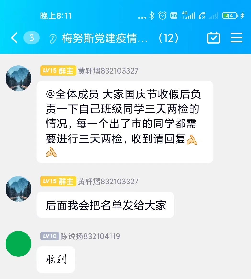 联合党委有效发挥党员先锋模范作用,组建疫情防控督导队,协助疫情防控排查等工作,做好请假返校学生的核酸跟踪及登记工作,推进疫情防控各项工作落实落细,为守好校园安全防线贡献青春力量。