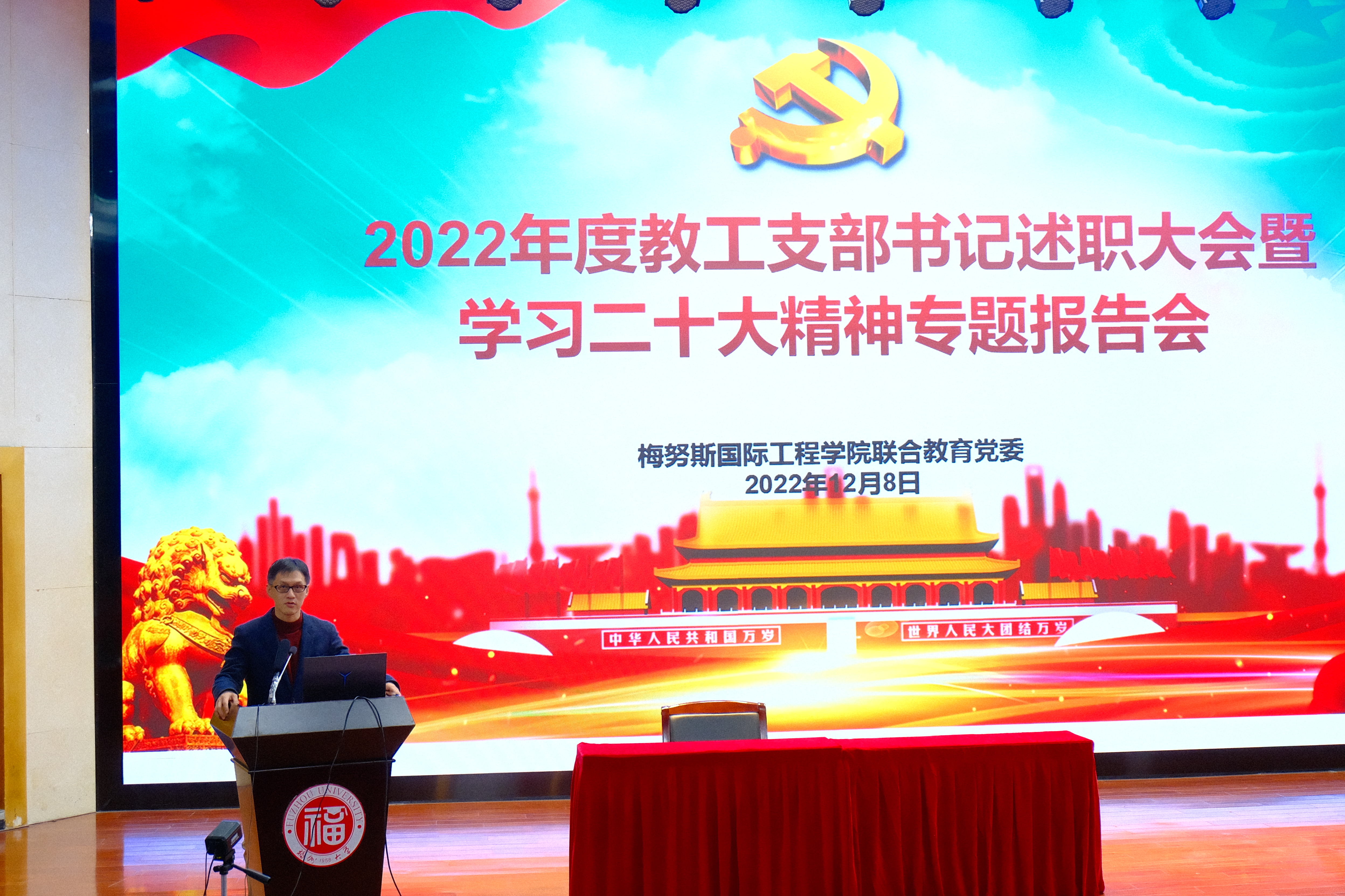 联合教育党委2022年度教工支部书记述职大会暨学习二十大精神专题报告会在校模拟法庭顺利召开。校党委统战部部长林新辉老师,党委组织部副部长阙璧君老师,校纪委综合室副主任林元新老师出席了本次会议。无码剧情