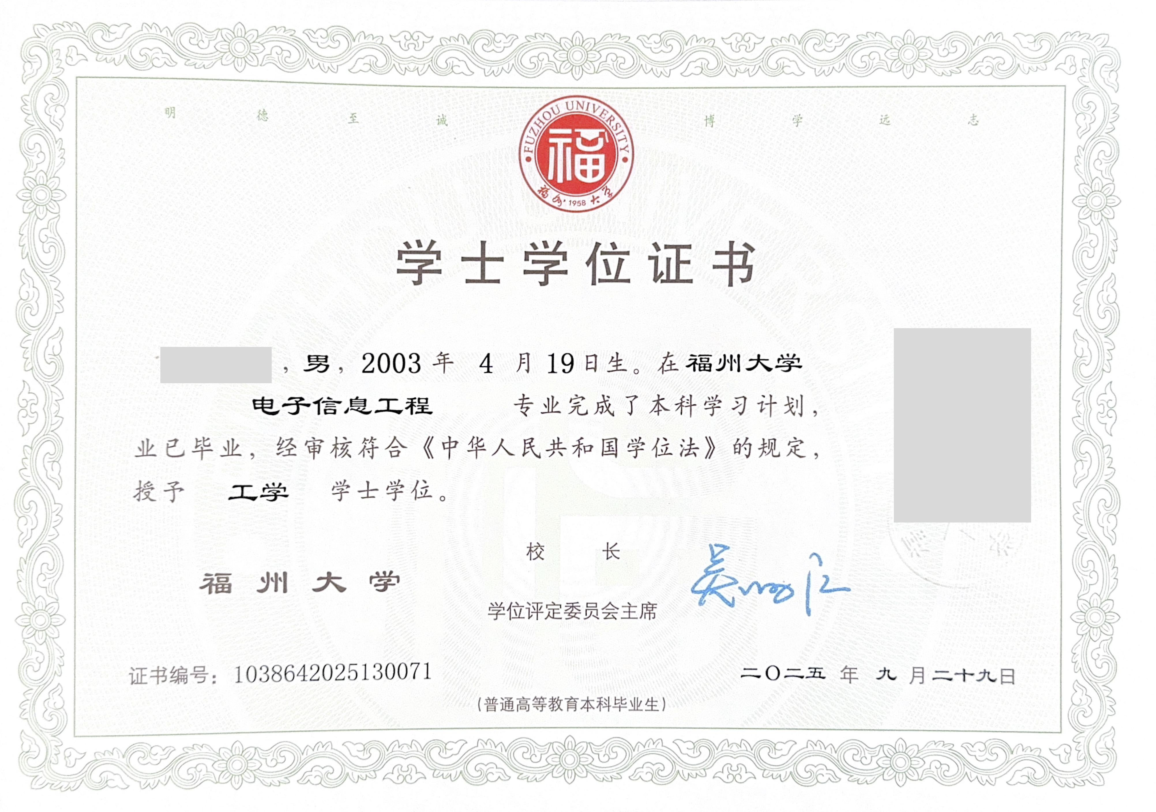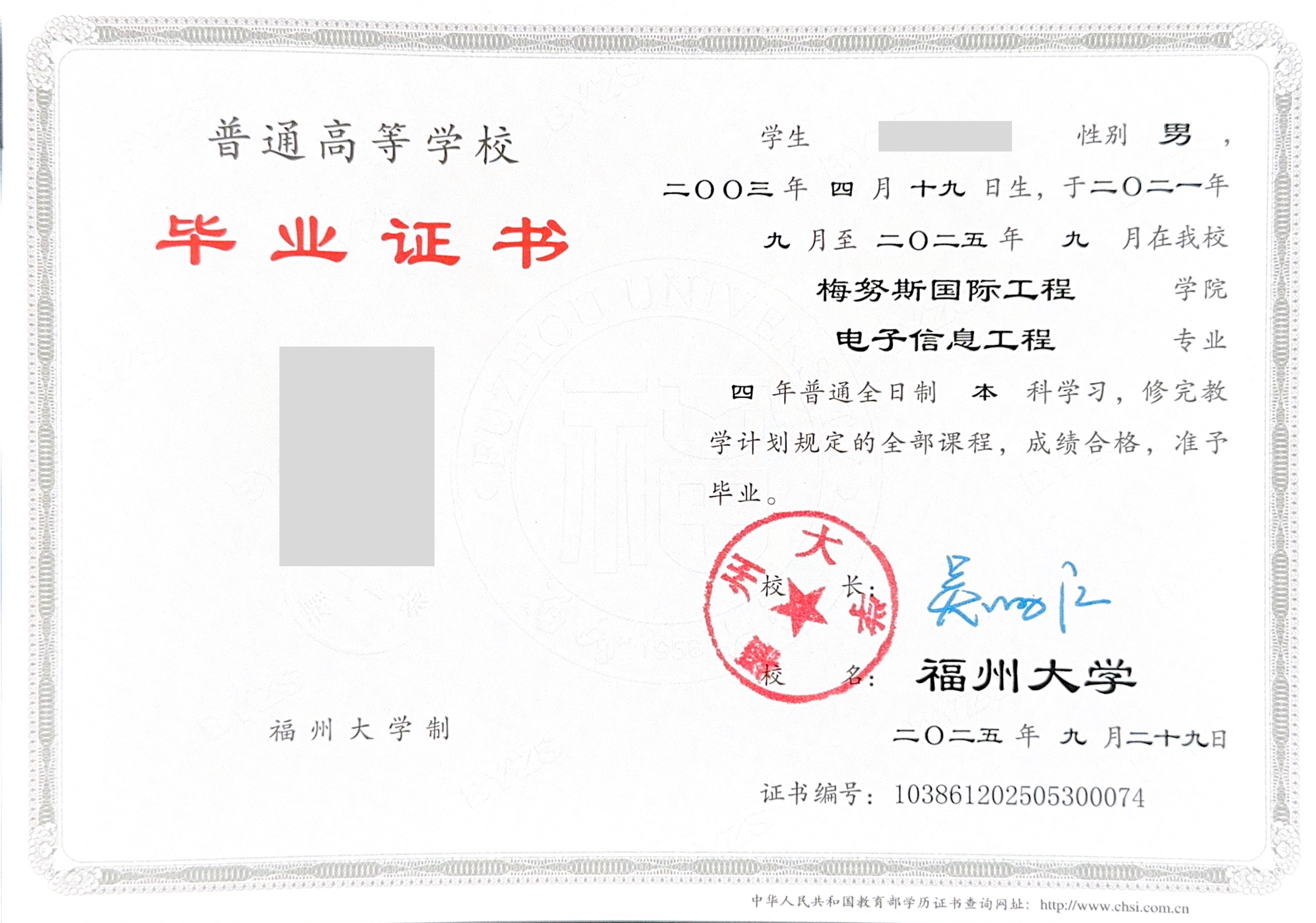 采用“4+0”培养模式,合格毕业生可同时获得福州大学毕业证书、学士学位证书(盖章为福州大学)和爱尔兰国立梅努斯大学学士学位证书。